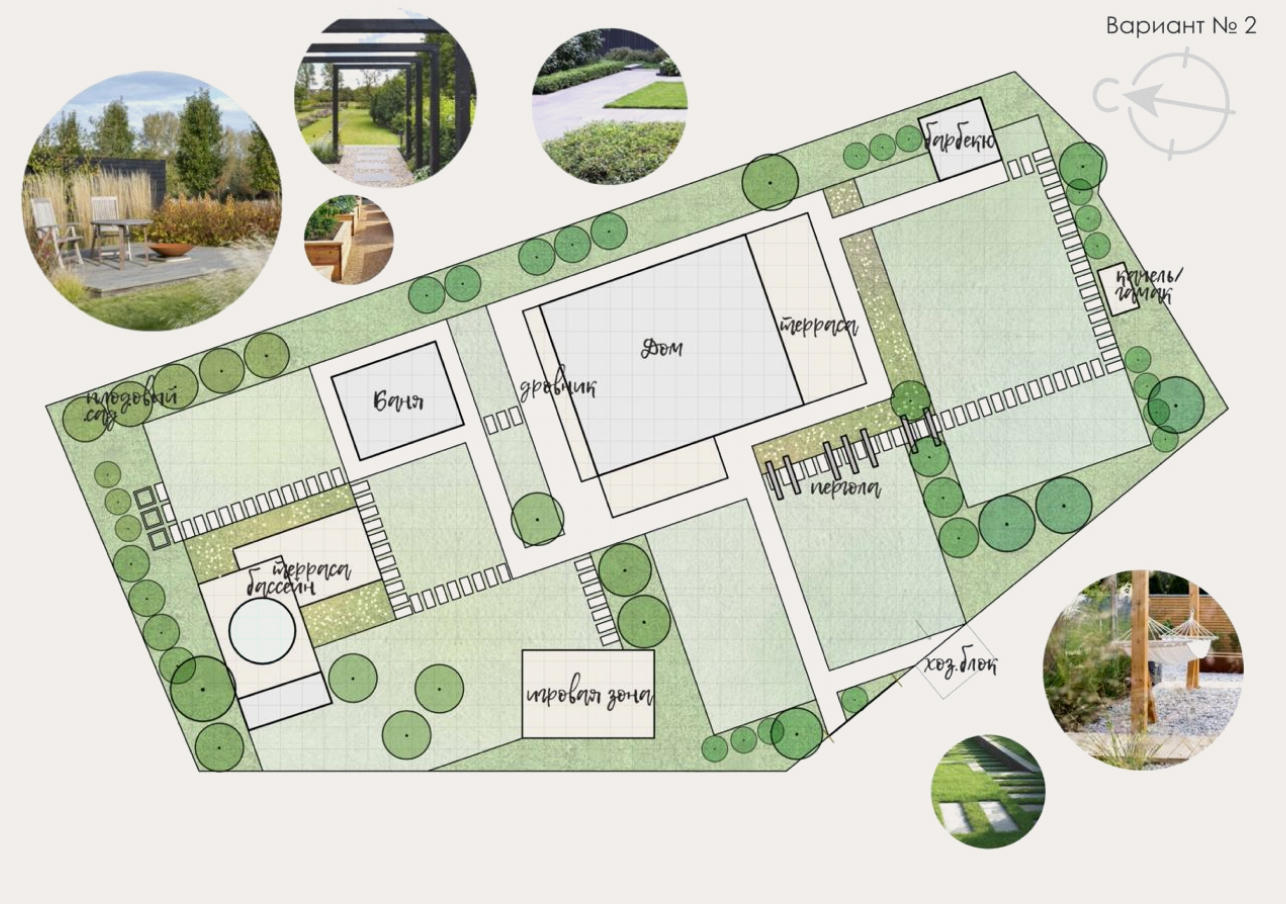 Мы рекомендуем это делать на этапе покупки участка или расстановки строений, чтобы сразу продумать объемно-пространственную структуру сада и дорожно-тропиночную сеть.